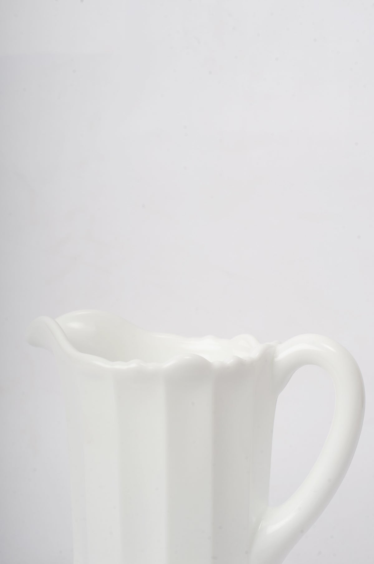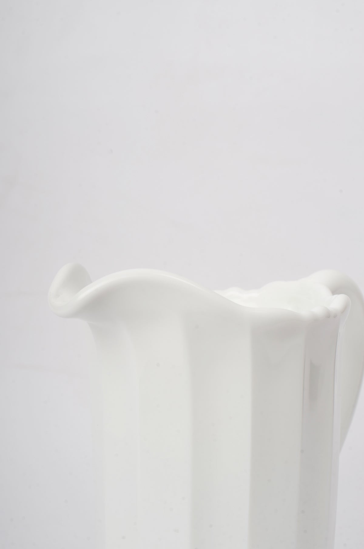 Turn a simple jug of water into a stylish centrepiece with the vintage style Mosser Pitcher. The panelled sides give a timeless look, while the irregular scalloped rim is reminiscent of the centre of a daffodil. The large handle is easy and comfortable to hold.