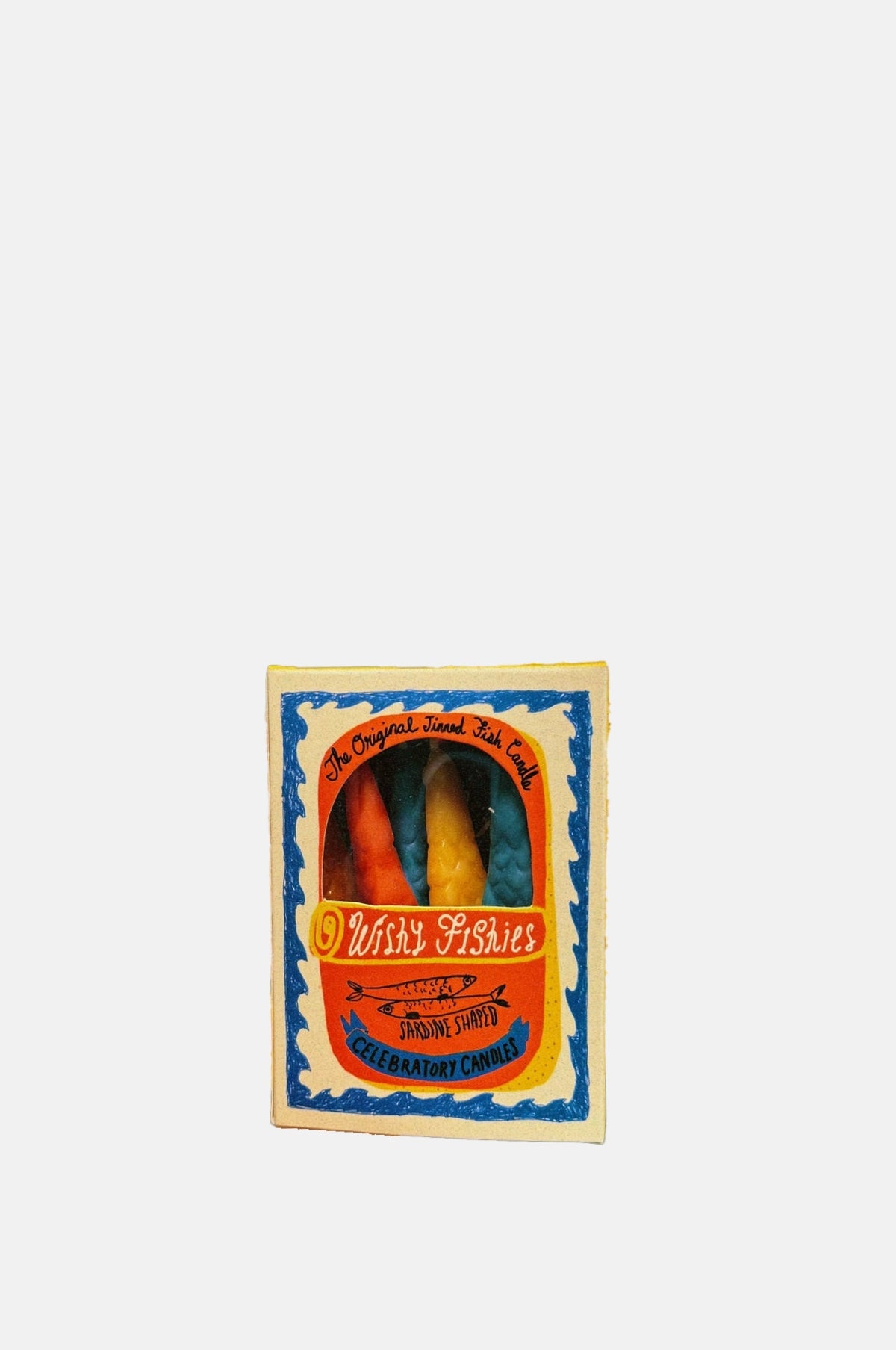 Place your wish upon a fish! Delight any tinned fish lover with this pack of eight sardine-shaped candles. Made in the USA from soy wax, these candles make a playful topper to any cake.