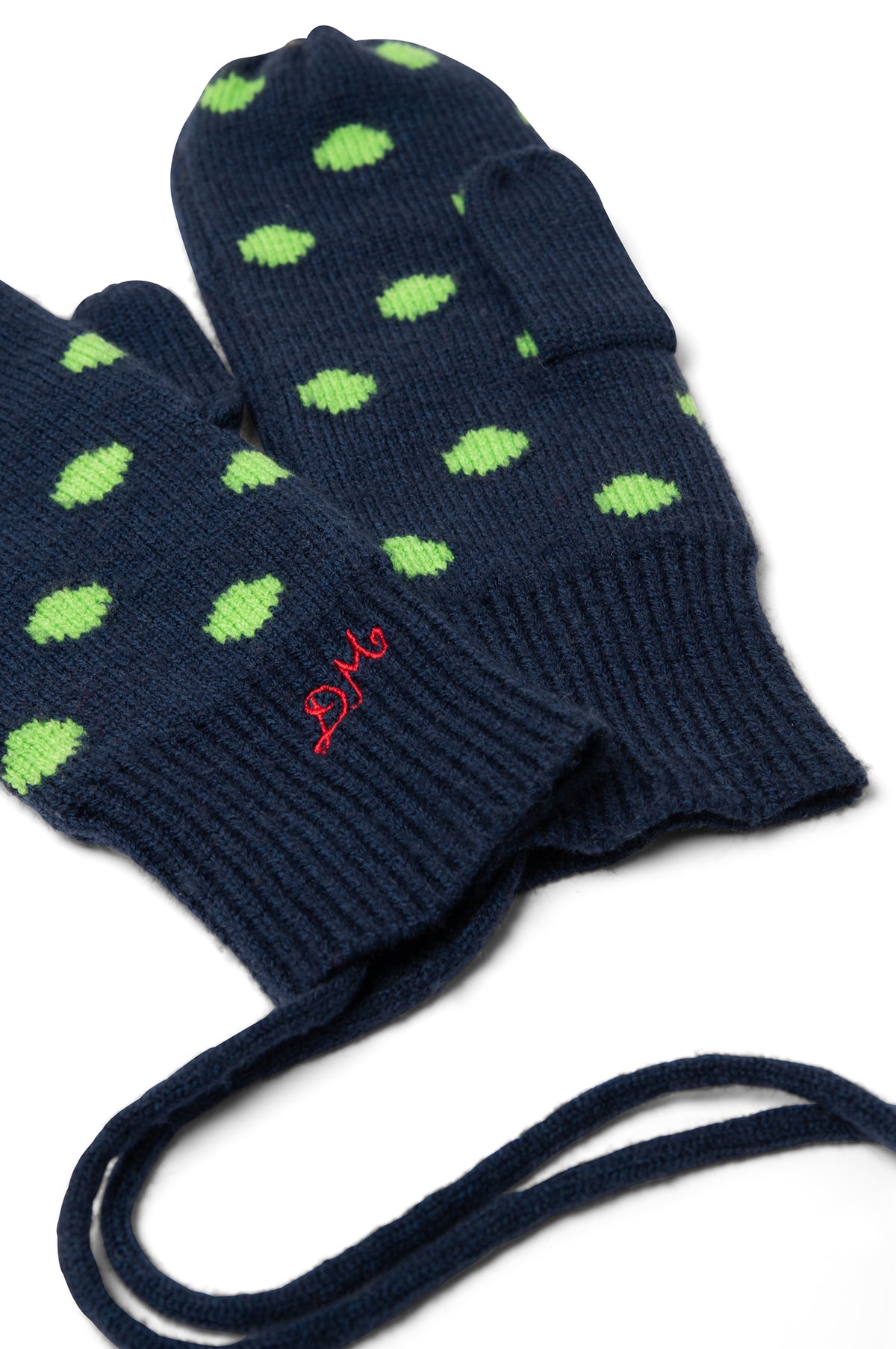 Keep your hands toasty with the Cable String Mittens from Damson Madder. Making accessoring playful, these navy mittens are patterned with an allover lime spot. Ribbed at the cuffs, they are finished with a contrasting red 'DM' embroidered logo.