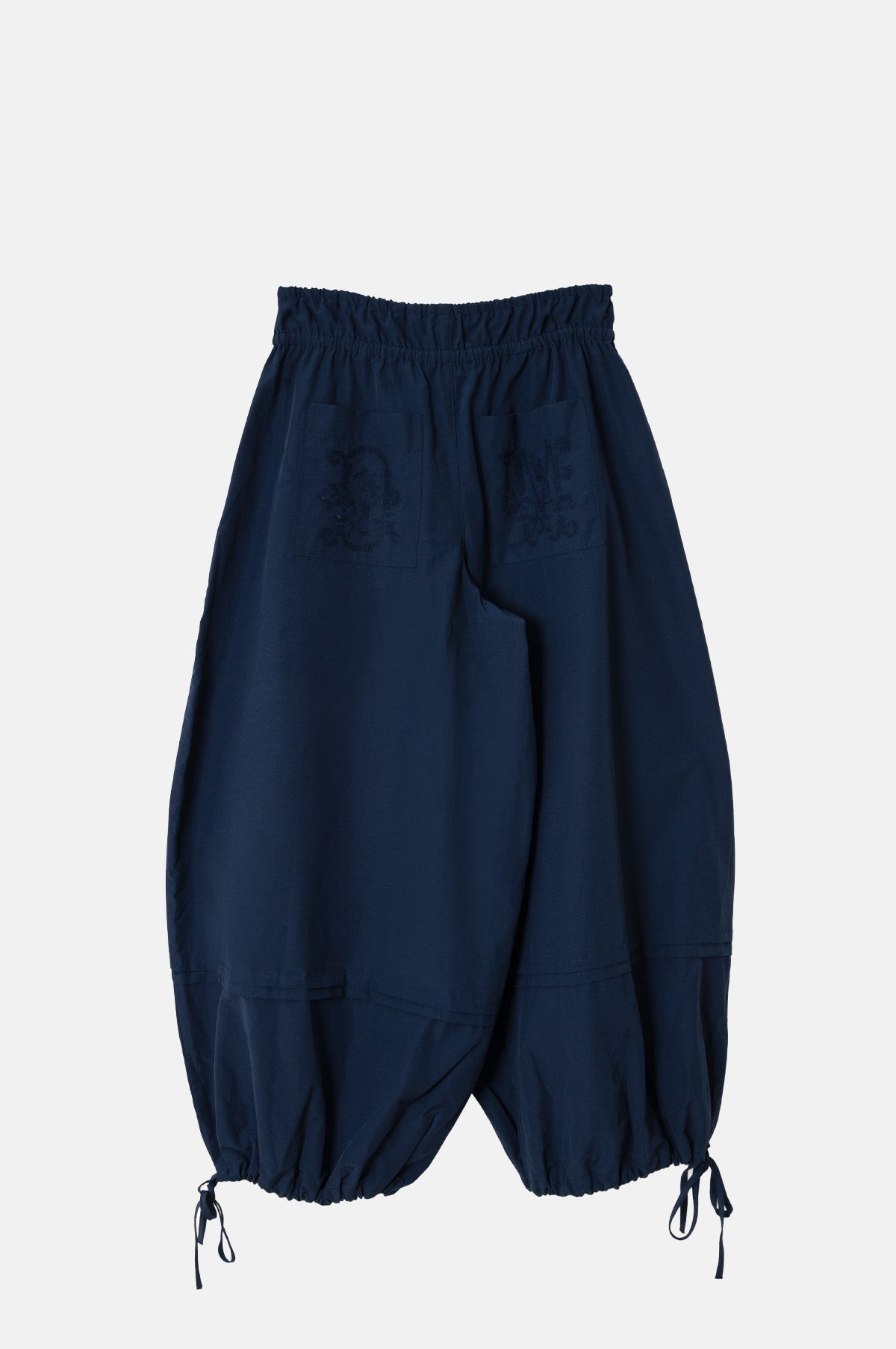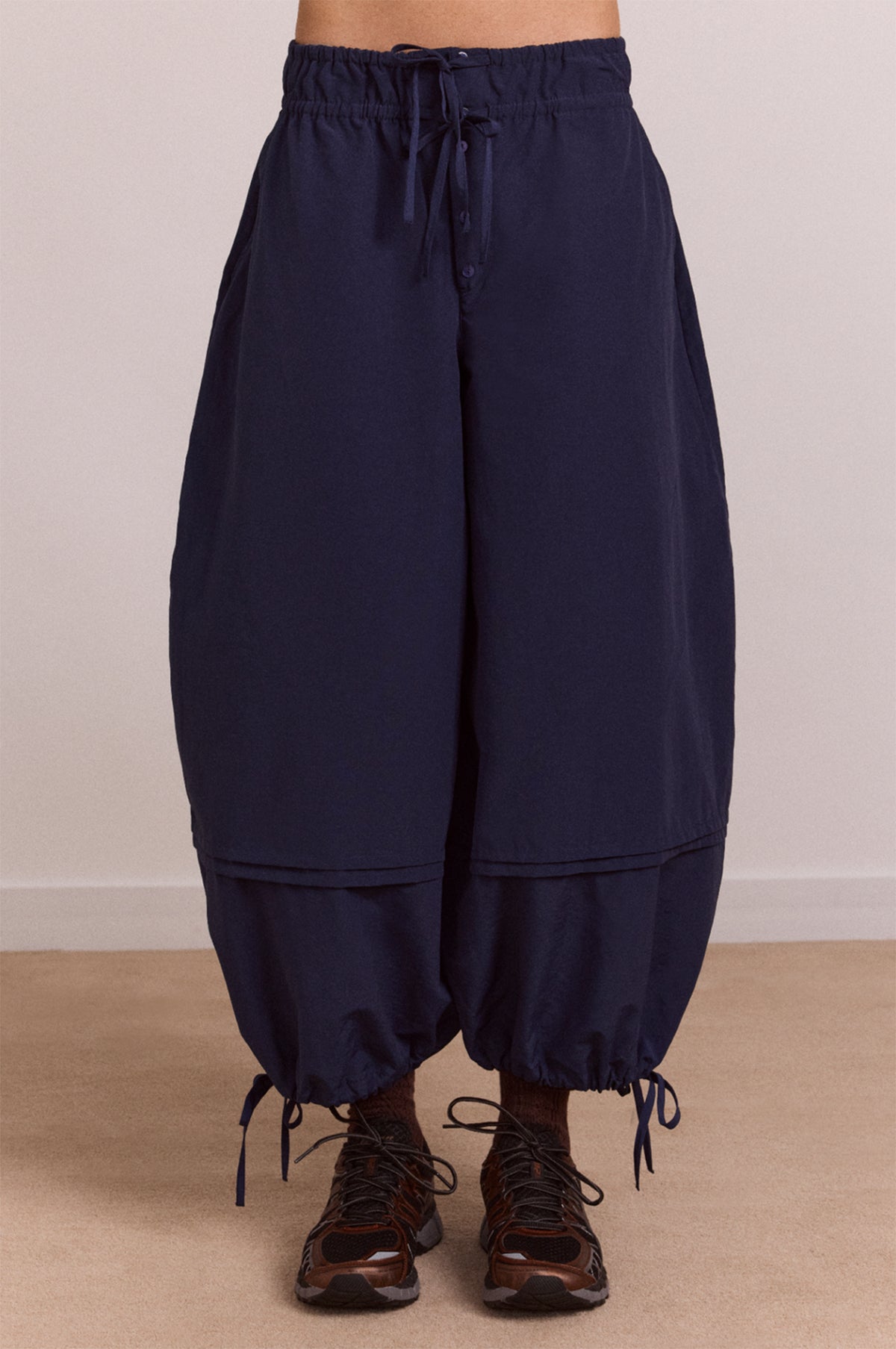 - Adjustable leg: can be worn wide leg or ballooned with tie at hem