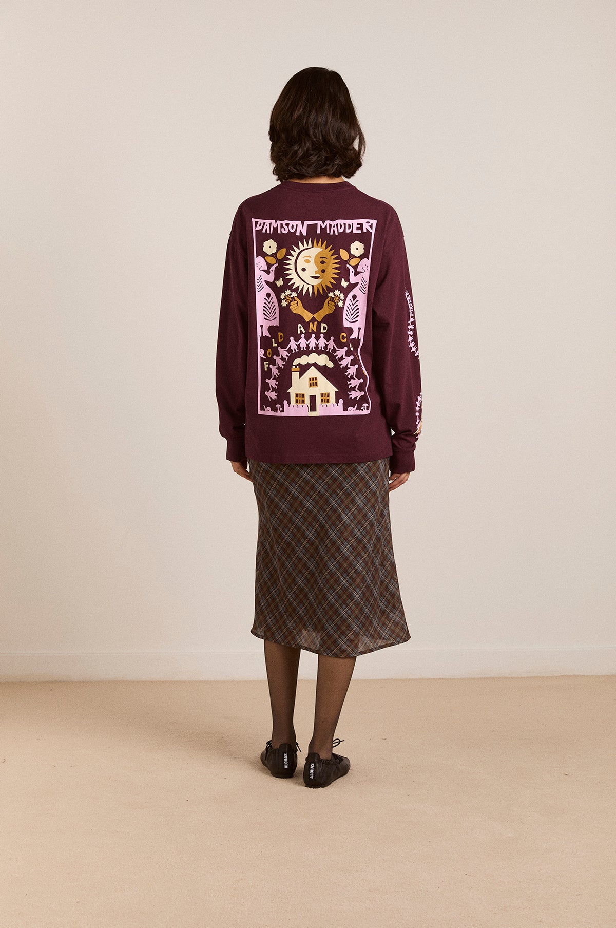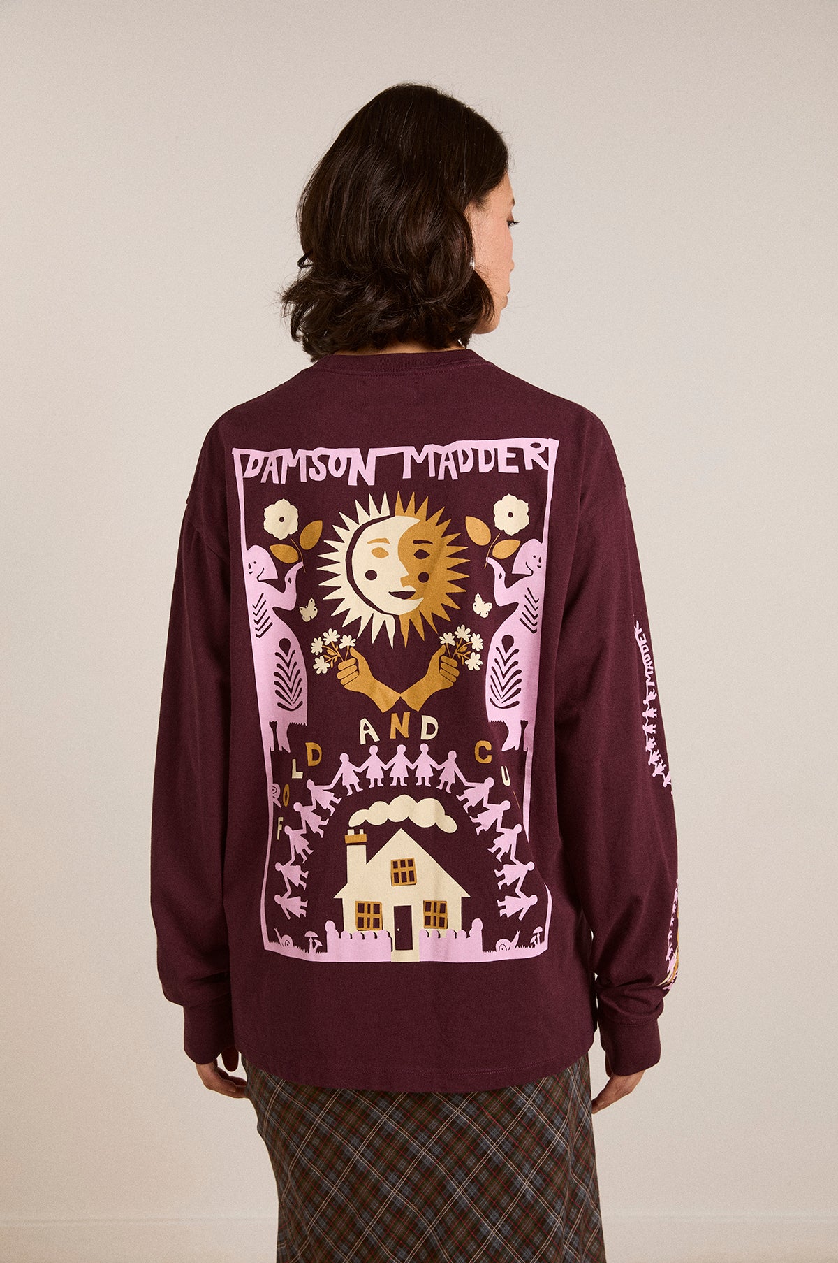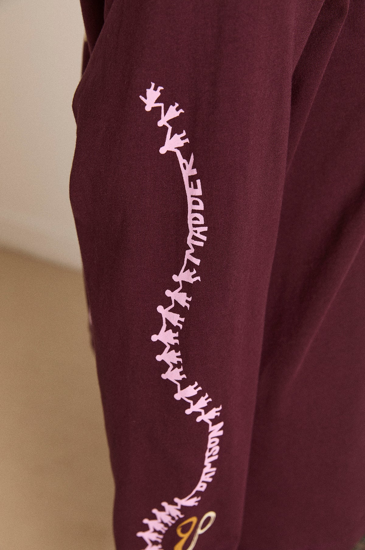 Crafted from organic cotton, the Paper Cut Gals Tee is a go-to piece to reach you'll reach for everyday. Designed with a relaxed, oversized fit this burgundy top features thoughtfully placed paper cut themed graphic prints along the sleeves, at the front and on the back.