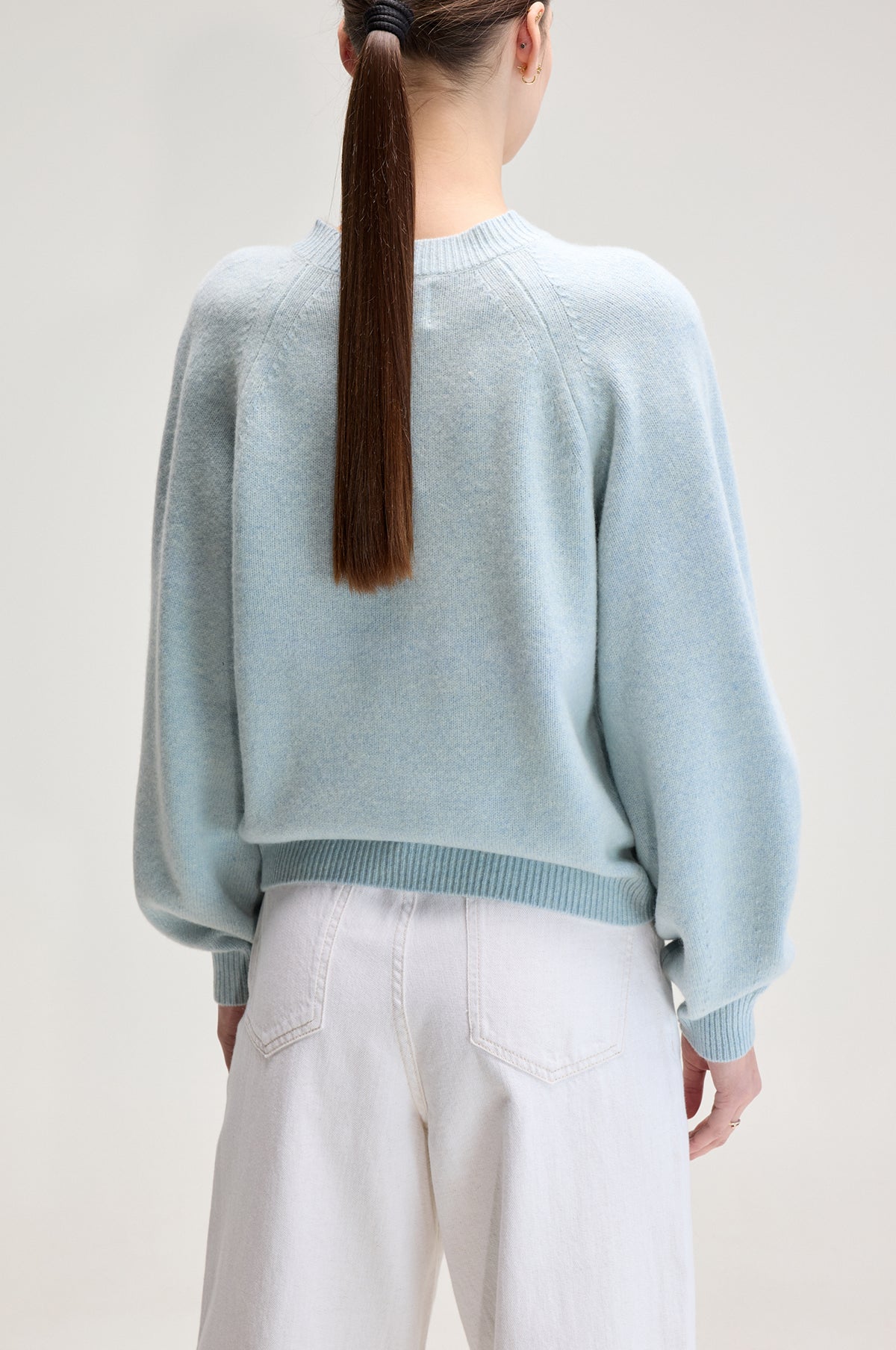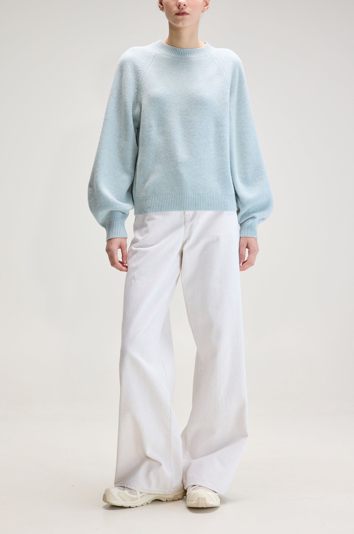 With its slouchy shape and blousy sleeves that are gathered at the wrist, this ice-blue jumper from Bellerose has a floaty silhouette that sits perfectly on top of trousers.