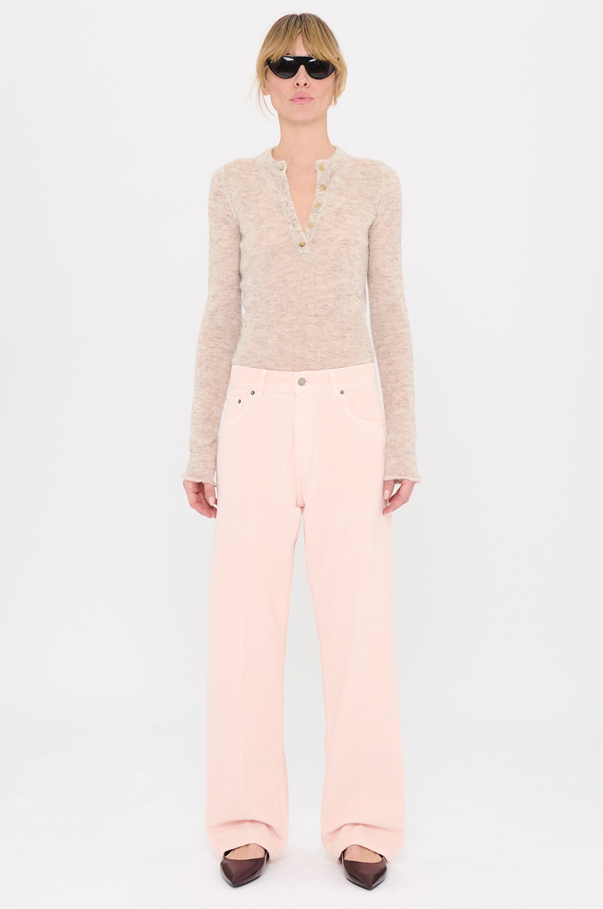 Perhaps a bit marmite, we love a straight leg trouser. As Vogue astutely observed, they serve as a strong foundation for outfits that are designed to live in. This blush pink pair from Haikure is made from a plush thinly waled corduroy and offers a lovely feminine take on a great basic. With a high-rise, zip and fly closure, and classic five pocket construction - these trousers make a great base for any outfit.