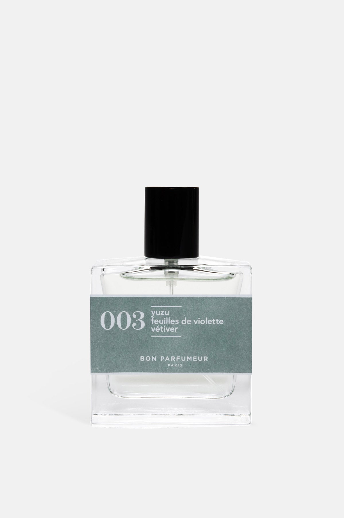 Scent 003 is a cologne with a vegetal, woody scent. At first, this fragrance offers generous minty and zesty notes with Yuzu, Violet leaves and Vetiver.