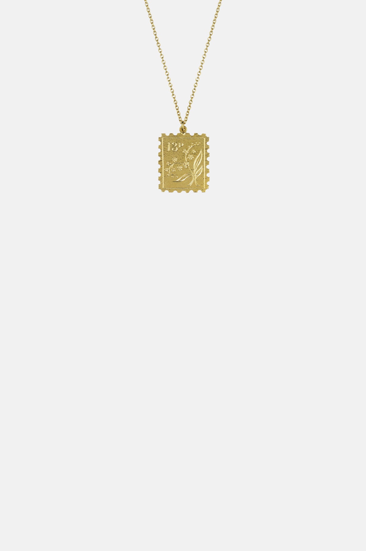 In honour of one of the world's most popular hobbies, this necklace is wonderfully nostalgic. It has a papery texture and is engraved with a forget-me not which, is also a sweet ode to letter writing. Handmade from gold plated sterling silver, this necklace comes on an adjustable 16-18" chain.