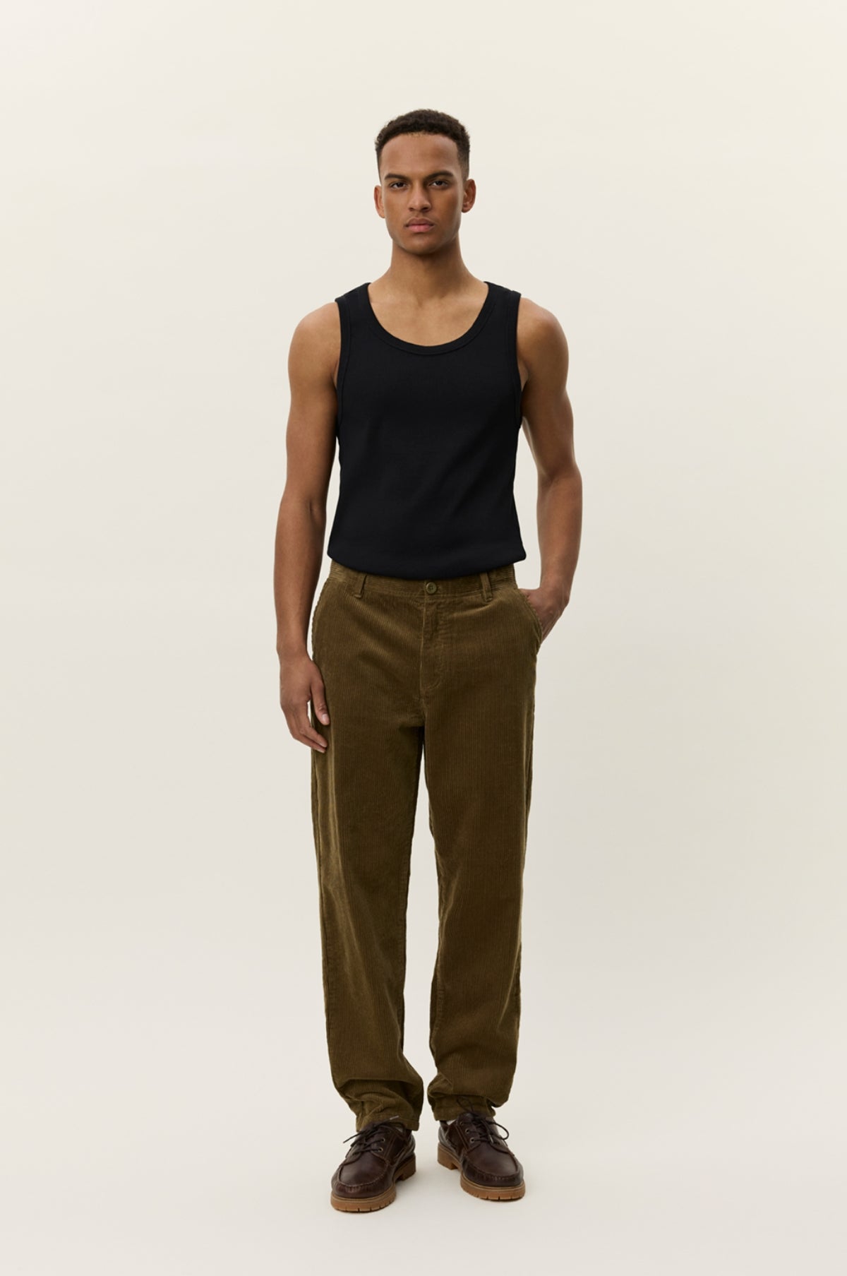 Brand new for AW25 Les Deux are a Copenhagen based brand that bridge the gap between streetwear and classic menswear with a minimal aesthetic and reasonable price point. The Kody Corduroy Pants Military in Olive are a relaxed tapered trouser crafted from heavyweight 8 wale corduroy.