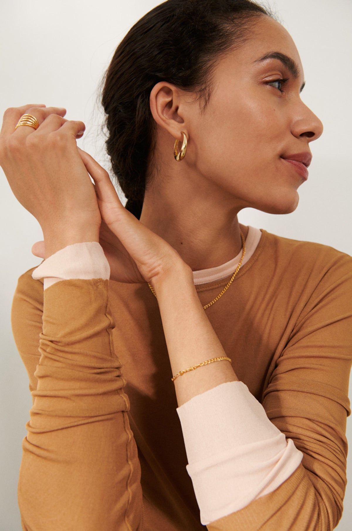 Minimalist and these timeless these large gold plated hoop earrings are a bigger version of a Pernille Corydon classic. They have clean lines and a smooth surface and look beautiful on their own or paired with other pieces.