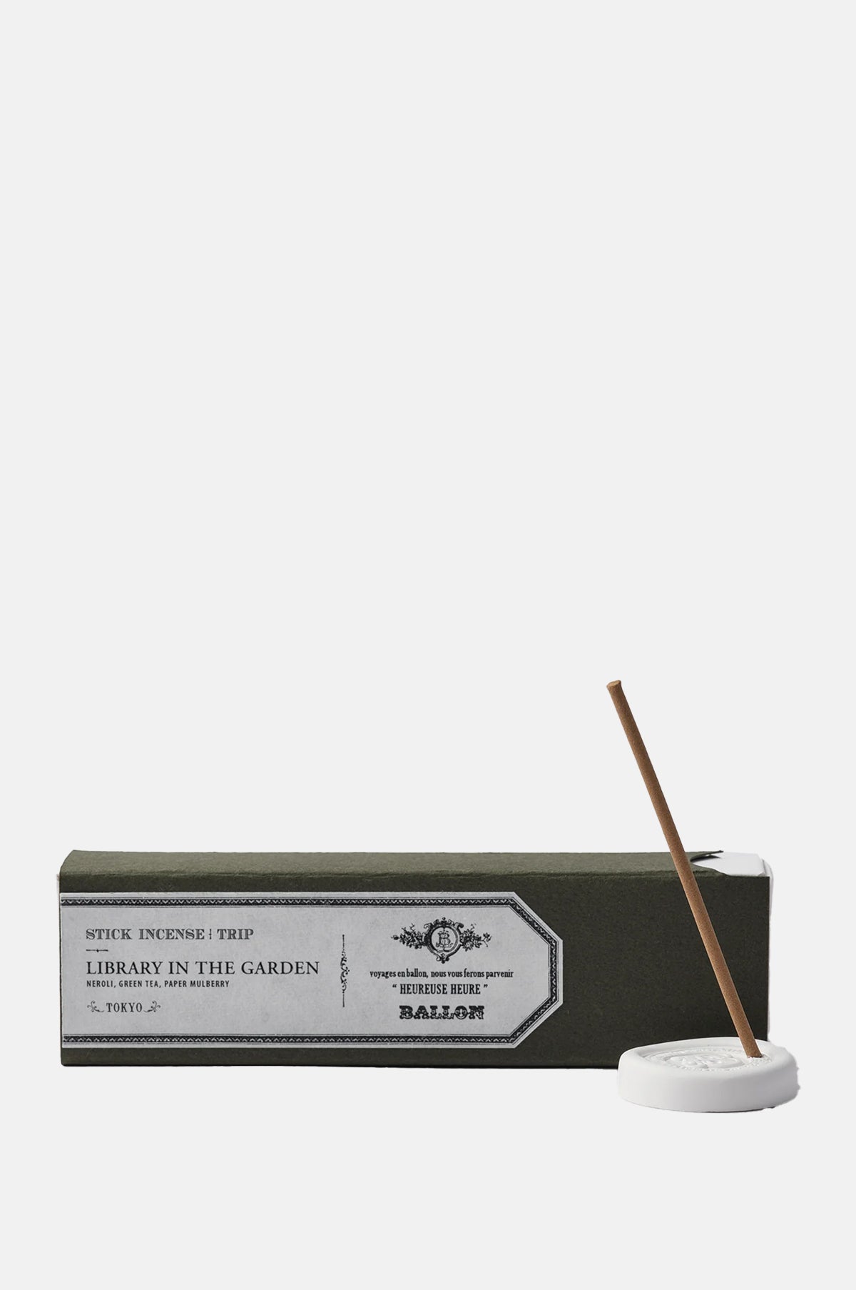 Be transported to a tranquil Tokyo garden with Library in the Garden, an evocative incense set by Japanese brand Ballon. Part of a collection inspired by four iconic cities, this elegant box holds 20 incense sticks and a porcelain stand, designed with refined simplicity. The fragrance is a delicate harmony of neroli, green tea, and paper mulberry — a fresh, luminous blend that recalls quiet moments of contemplation amidst nature. A serene, sophisticated scent to bring balance and quiet luxury into your everyday rituals.