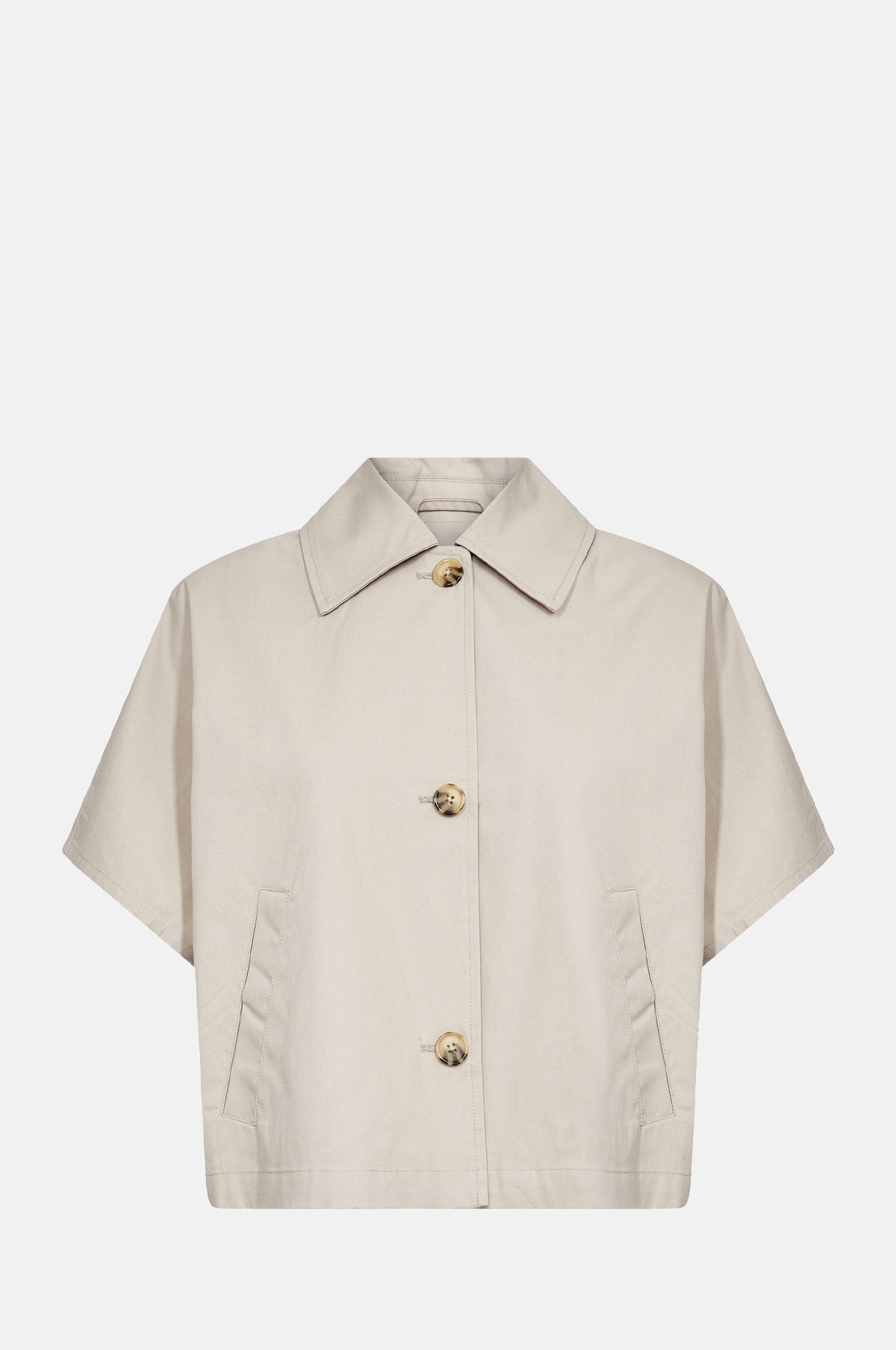 The Piper is a versatile light tan jacket that lends itself to being dressed up or down. It has a loose, cropped silhouette with short batwing sleeves whilst the classic collar and line of tortoiseshell button fastenings nod to convention and keeps things smart and structured. Pair with tailored trousers or a sleek skirt for an elegant look.