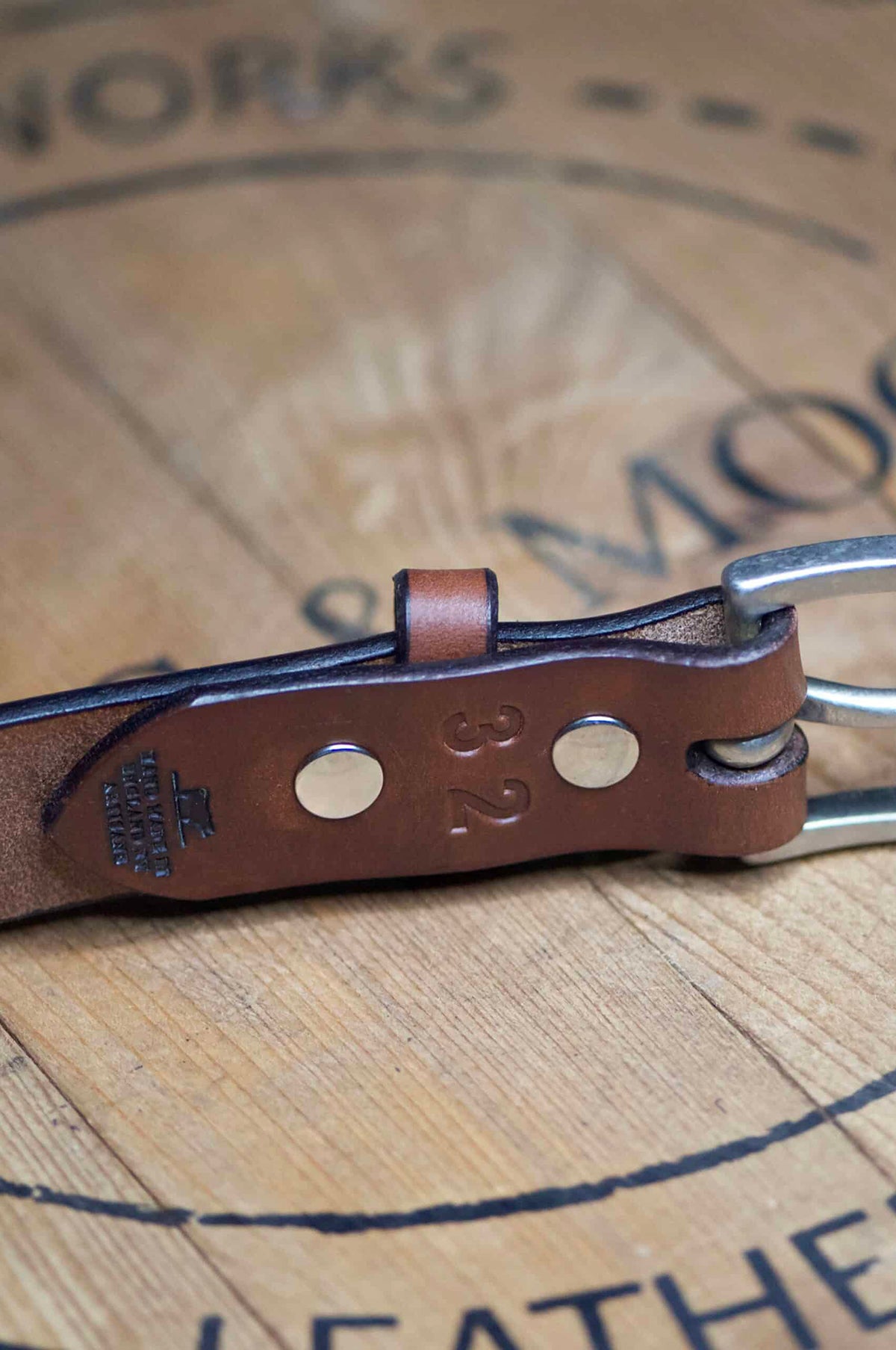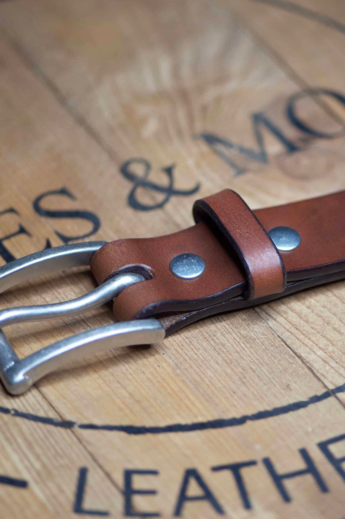 Barnes & Moore offer premium quality made in England leather goods. The slim belt is perfect for those who prefer a narrower profile. The 32mm width is equally at home with trousers and chinos and works well with both. Handmade from high quality 5mm thick veg tanned harness leather.