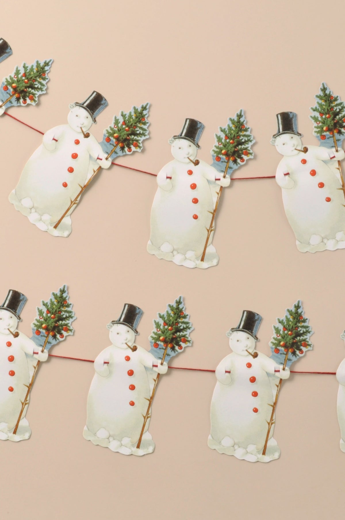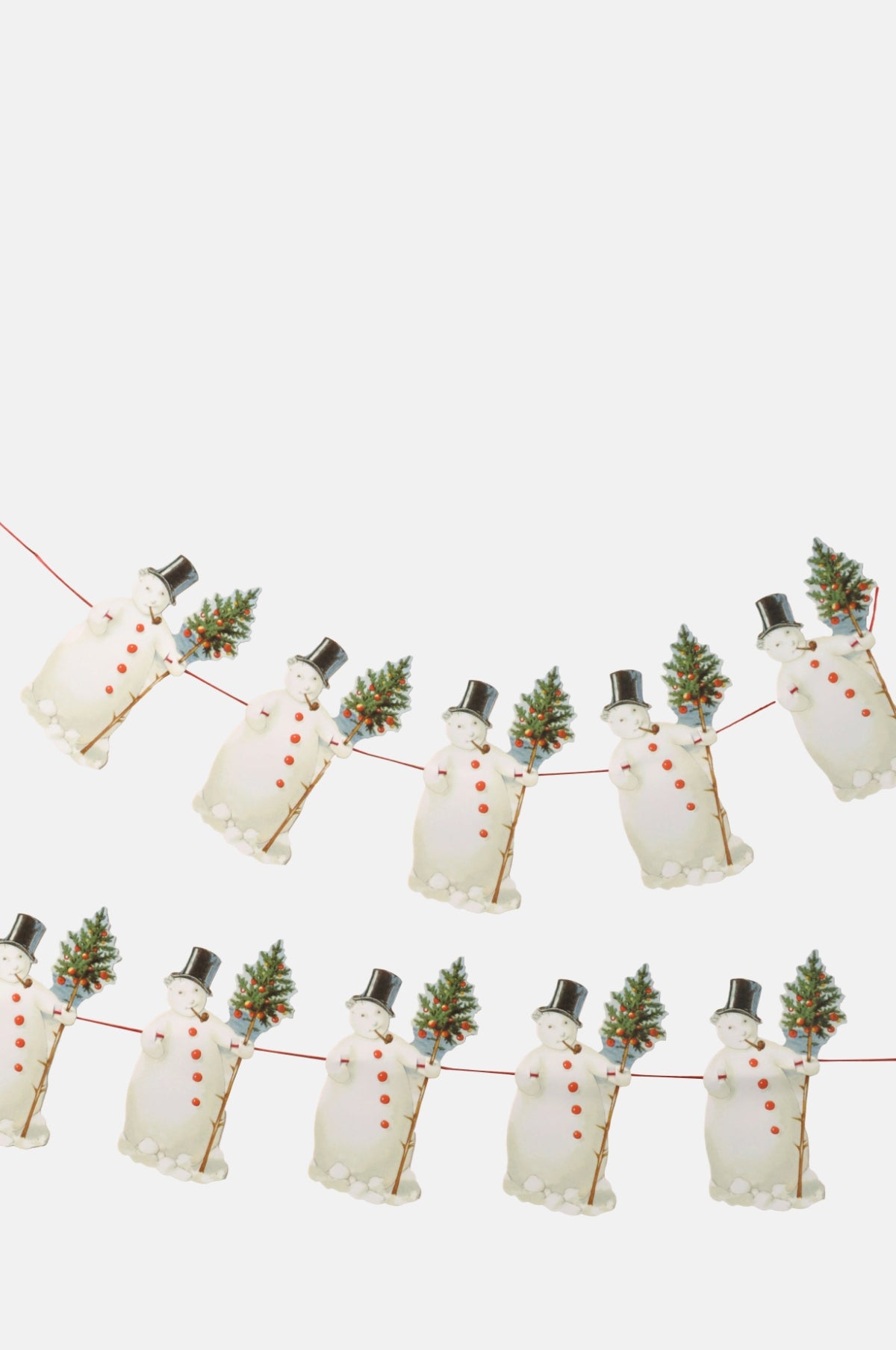 We love an easy-peasy way to decorate and a string garland has maximum impact with minimum effort! This charming retro garland features ten repeated motifs of a Snowman wearing a top hat, carrying a Christmas tree with a pipe. Perfect for hanging over mirrors, mantlepieces and doorways this Christmas.