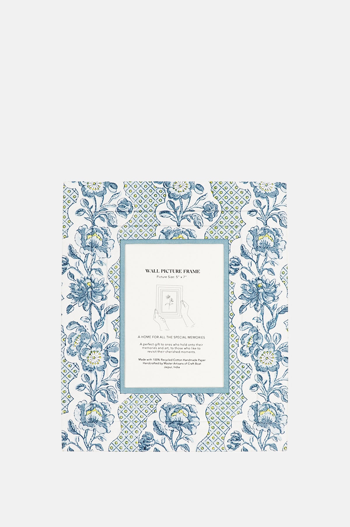 Craft Boat recycled cotton wall picture frames are handmade by master artisans who have been creating vintage style boxes and cartonage products for generations in Jaipur. This beautiful paper design featuring a trellis pattern of blue and yellow blooms has been hand block printed. This would make a perfect gift for those who hold onto and display their memories and art, to let them revisit their cherished moments.