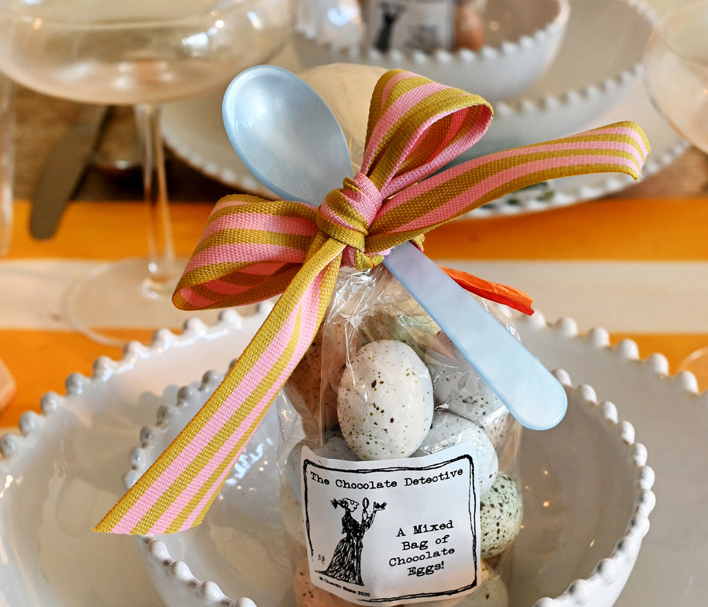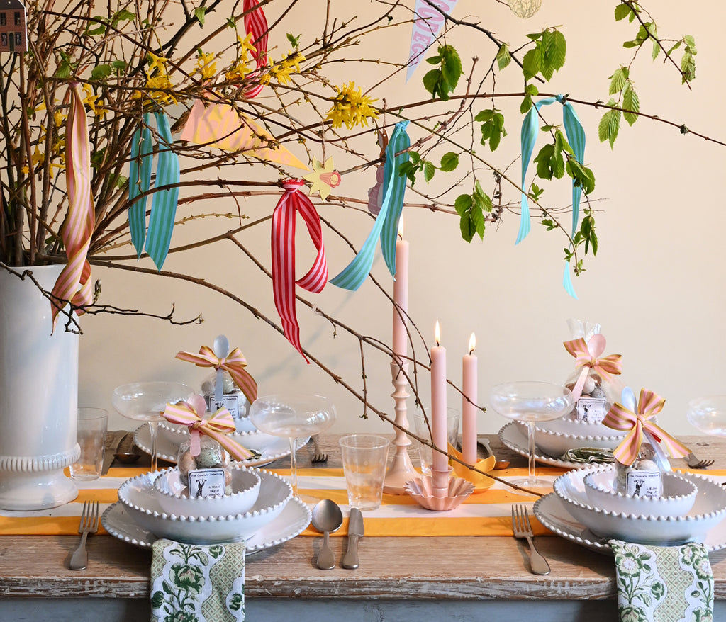 A bundle of twigs, a twist of ribbon, a sheet of decorations and bags and bags of eggs. Your table is set.
