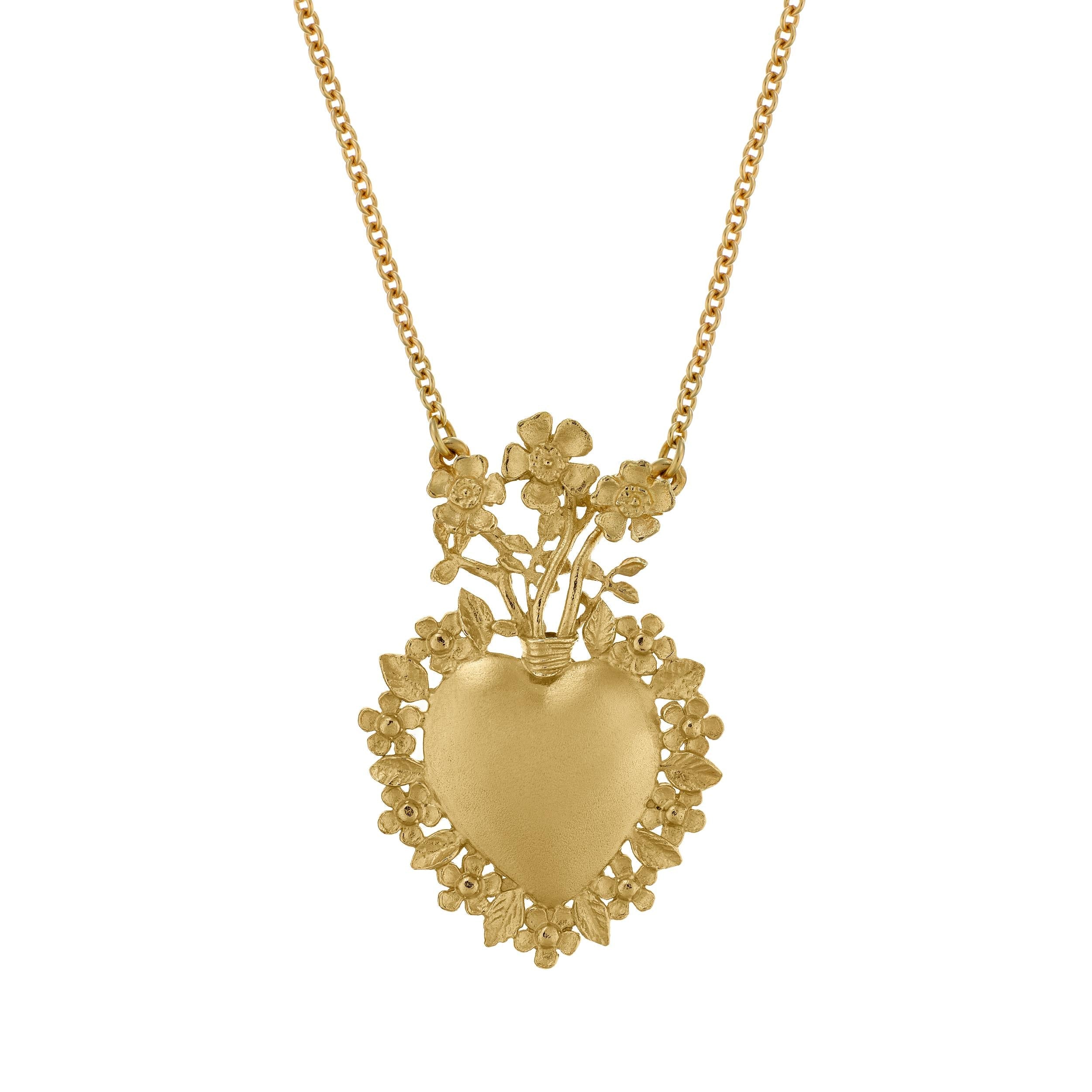 A.M. Floral Sacred Heart Necklace Gold