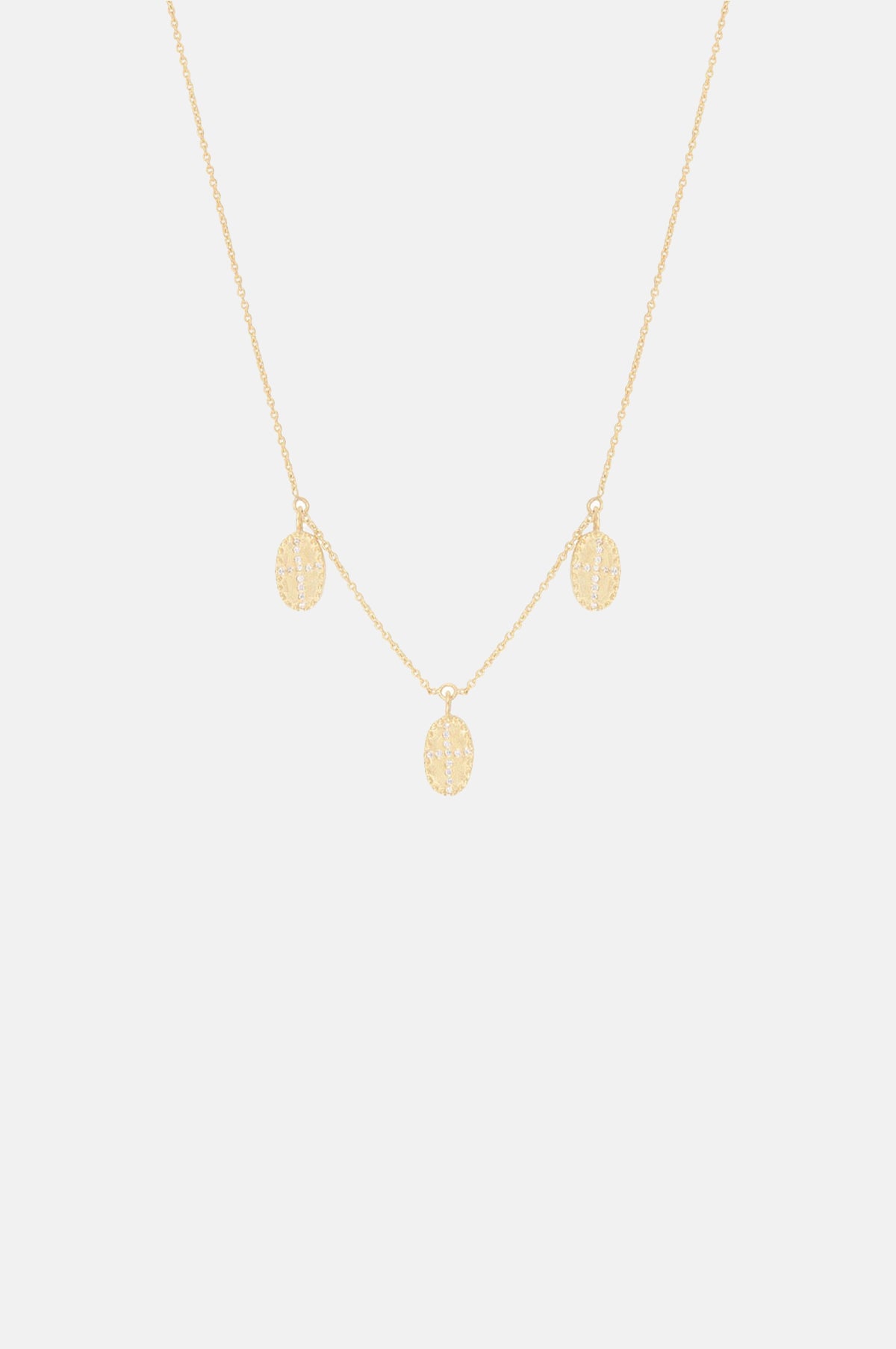 - Pendant necklace with three embossed Bazile medals set with white cubic zirconia