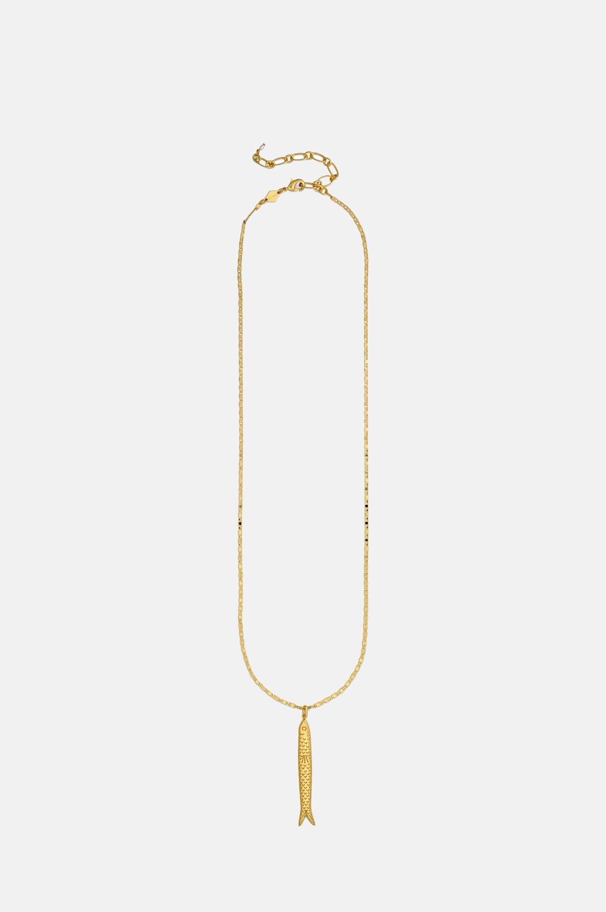 The Hippie Fish Necklace from Anni Lu features subtle ocean-inspired textures that beautifully capture the spirit of the sea, symbolizing its charm and mystery. A unique , vintage-inspired piece that embodies our love for the fish symbol, which represents good fortune and harmony, it is perfect for layering with other necklaces. We are also pairing ours with the matching Hippie Fish Gold Earrings.