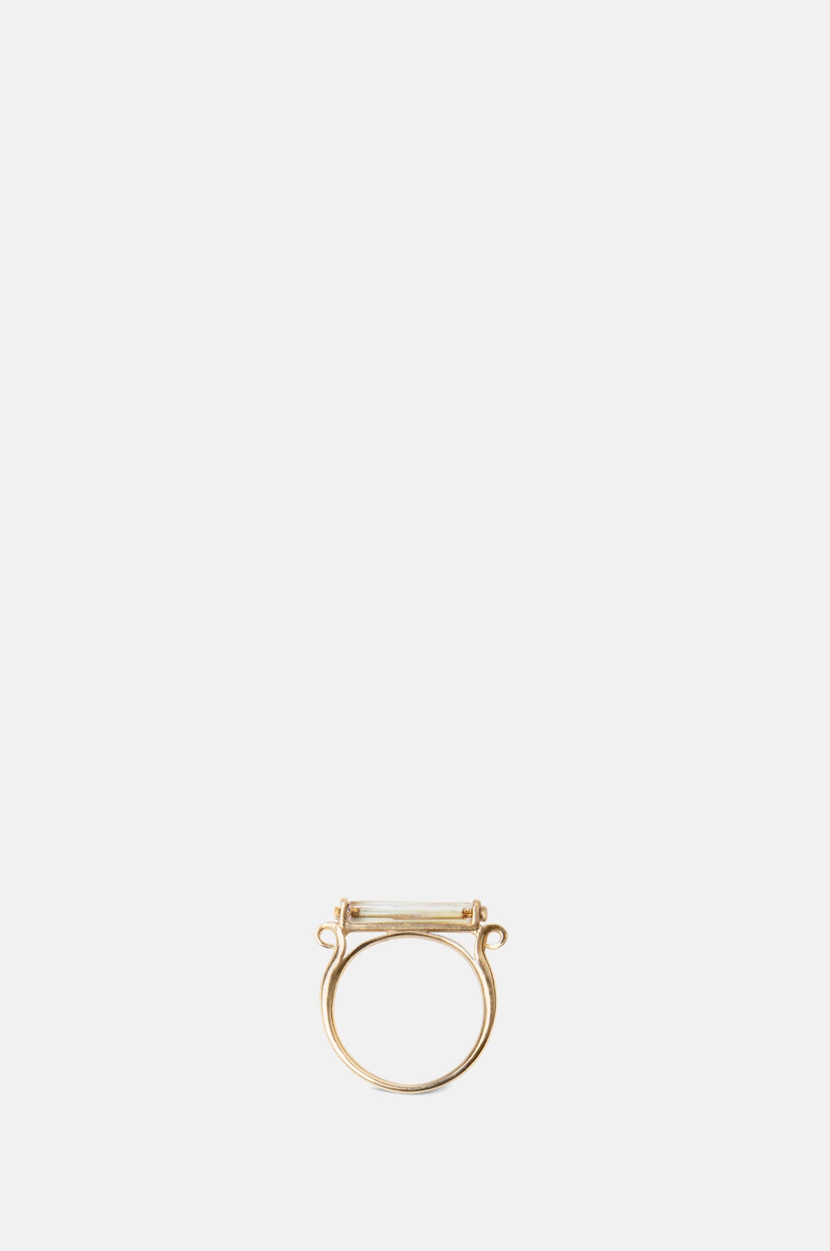 - Thin gold plated silver ring with a slim bar of vintage glass set in the centre