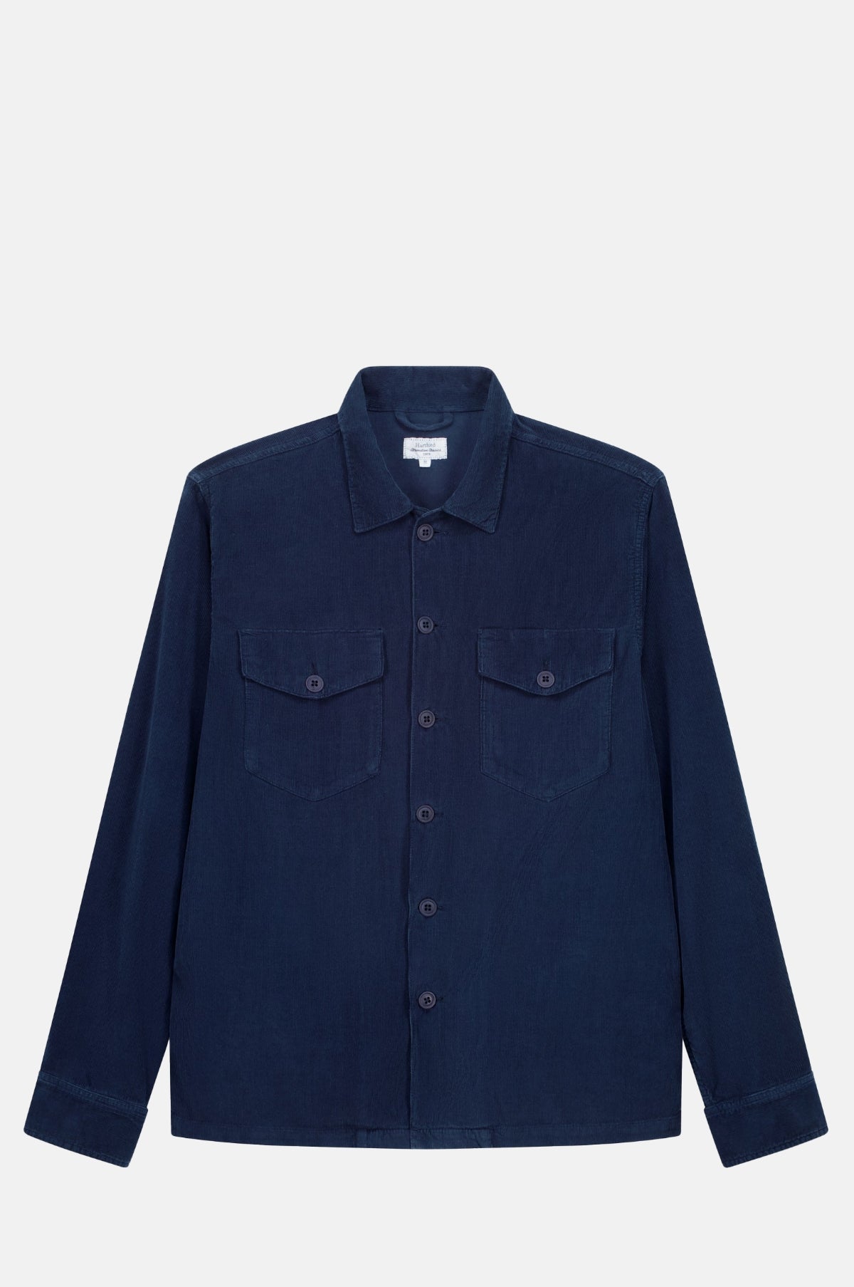 The Jame Jacket in Worker Blue is a military men's Corduroy jacket. It has a slightly ample regular fit, two buttoned flap pockets and adjustable buttoned cuffs.