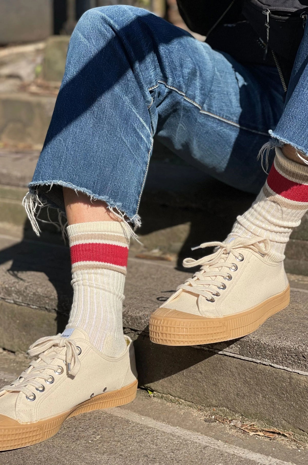 The Joe Vintage Sport men's socks by Ivy Ellis are inspired by the Ivy League and vintage sportswear, these socks are crafted from a retro-cream yarn with the a beige heel and toe. The cotton-rich fabric blend provides extreme comfort and durability, with a soft elasticated top for extra hold.