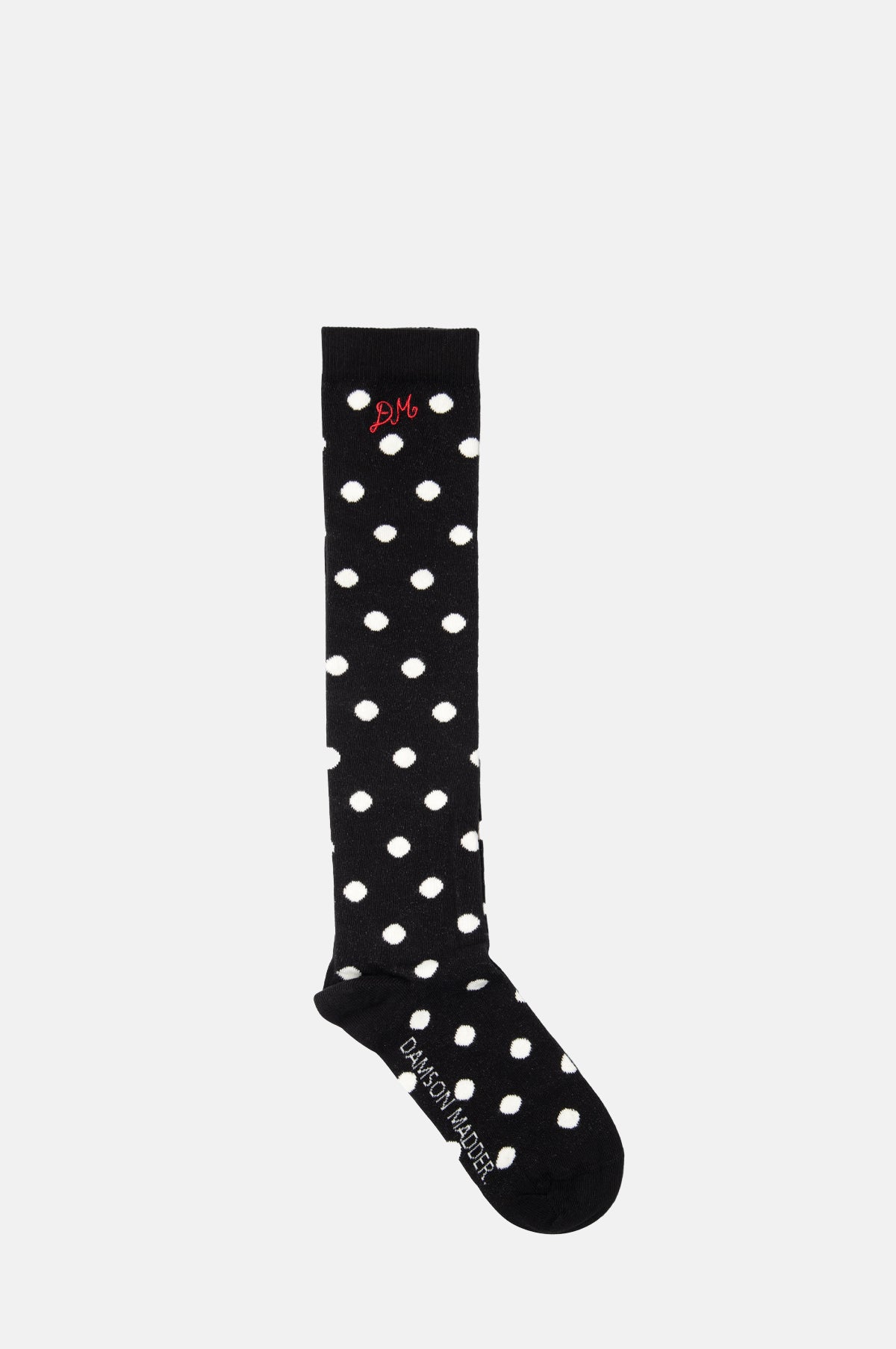 Dress in head-to-toe style with the Damson Madder Knee High Socks. Featuring a playful black and white polka dot, these socks offer a comfortable stretch from the nylon and elastane whilst the cotton adds an undeniable softness. Also available in a cream and black polka dot and a red and navy stripe.