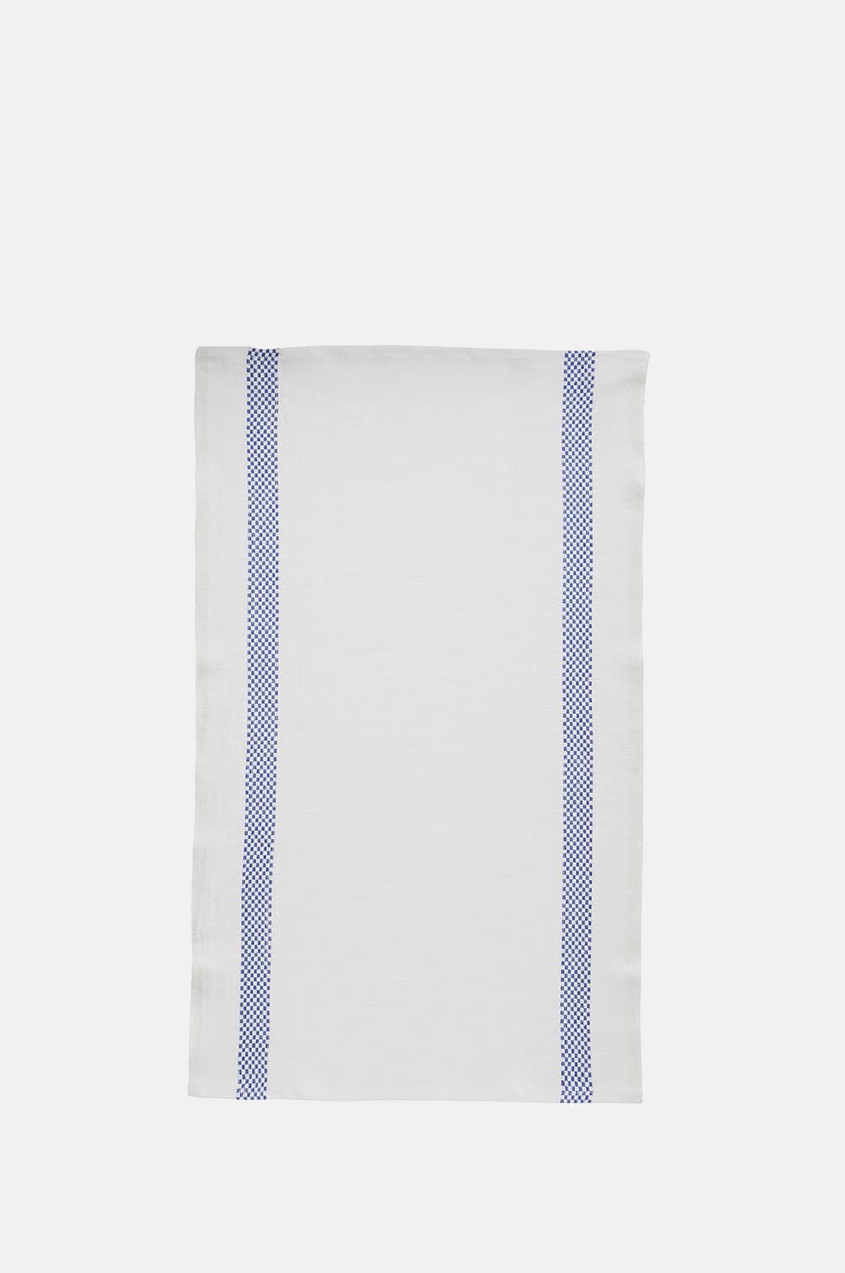 Weaving linens for over a century, Charvet Editions have mastered the art of a great tea towel. Made from a heavyweight white linen and cotton blend it feels substantial and will hold up to daily use. This rustic tea towel has two blue stripes left and right with woven small blue squares, creating a smart checkerboard stripe. Perfect for any country styled kitchen.