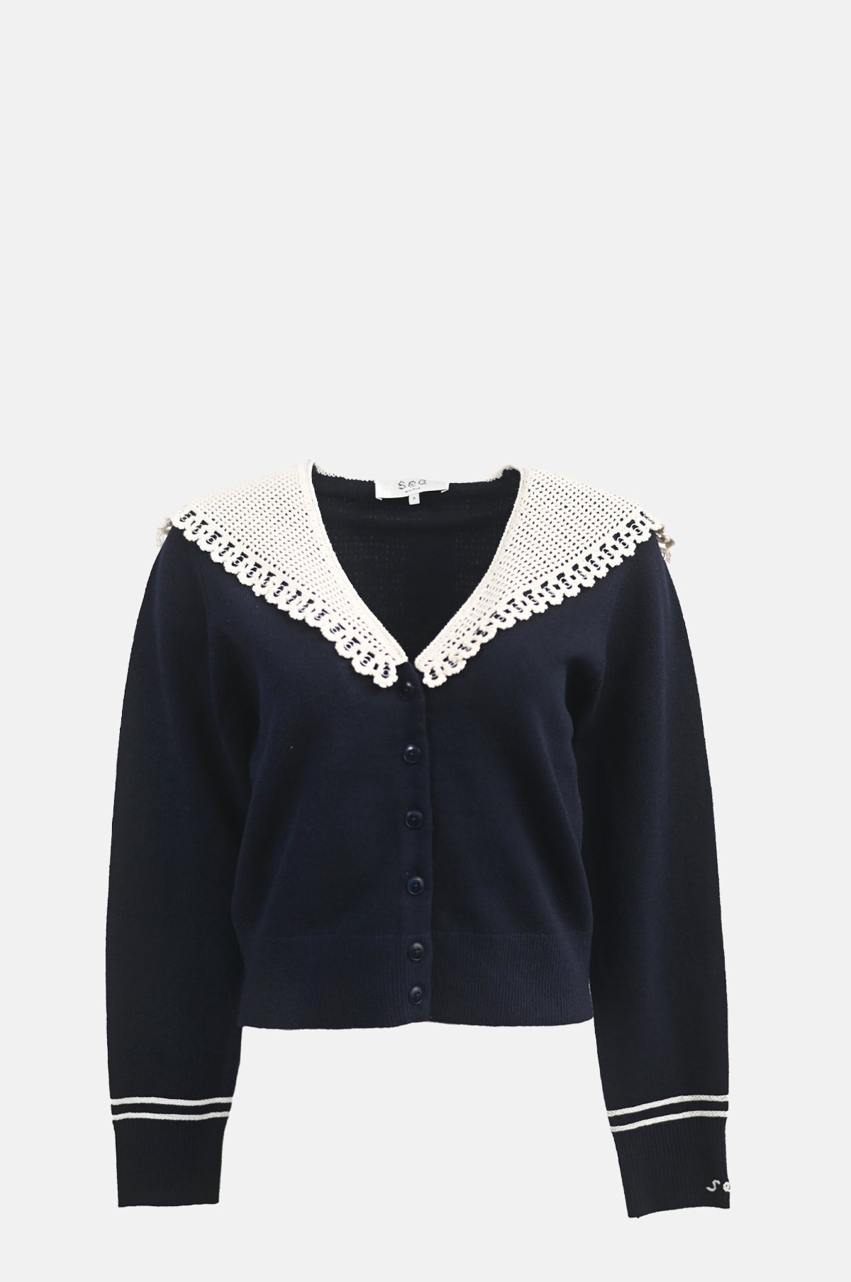 Marie Knit Embroidery L/Slv Cardigan Navy