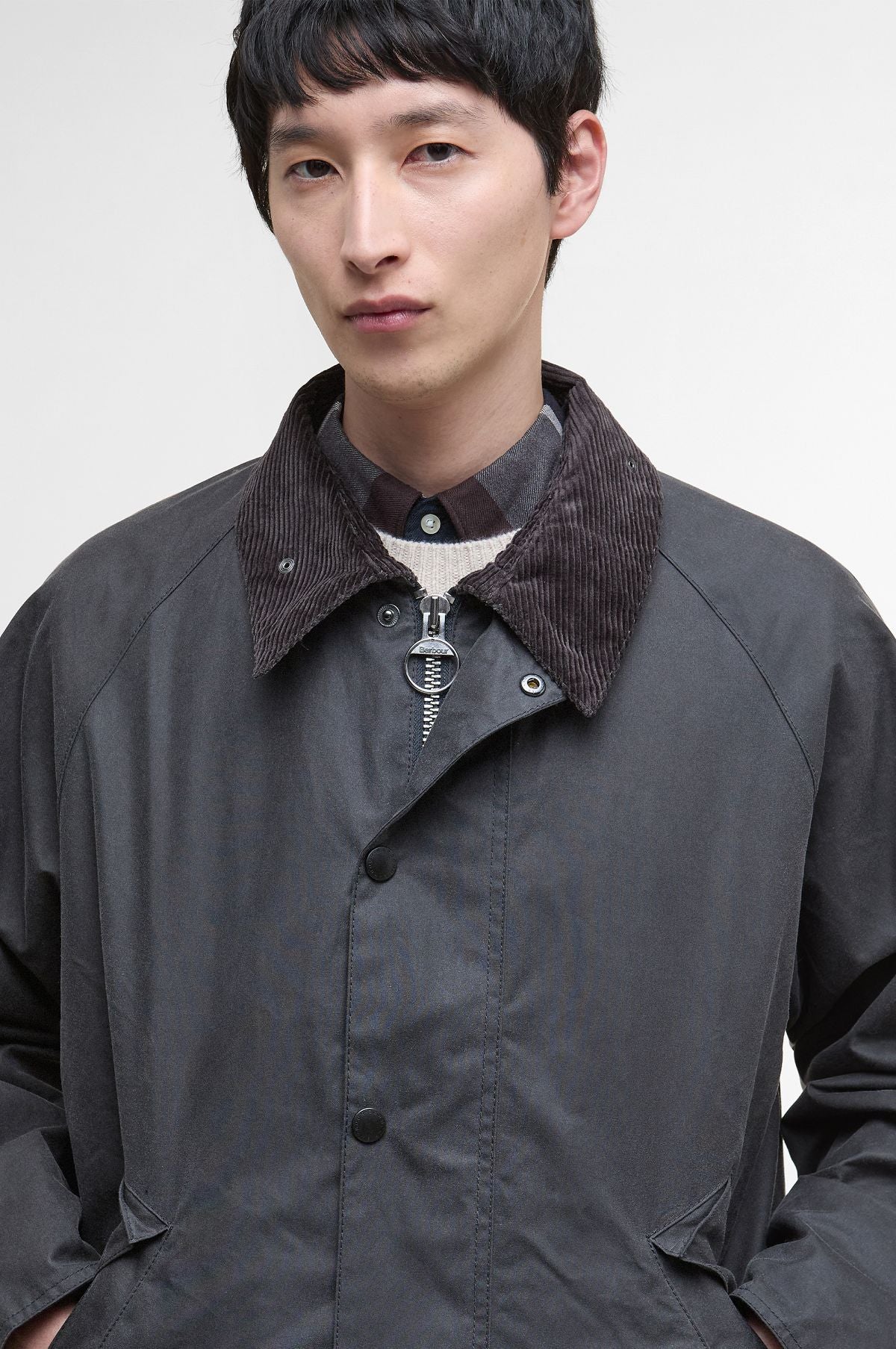 It doesn't more timeless than a waxed Barbour jacket. The OS Transport Wax Jacket is a reworked contemporary version of the quintessential waxed barbour jacket style. The Transport jacket features a cleaner silhouette with only 2 hand pockets and a cropped boxy fit. Constructed in Barbour's signature waterproof 6oz Sylkoil waxed cotton, with a matte finish and a comfortable, lived-in feel.