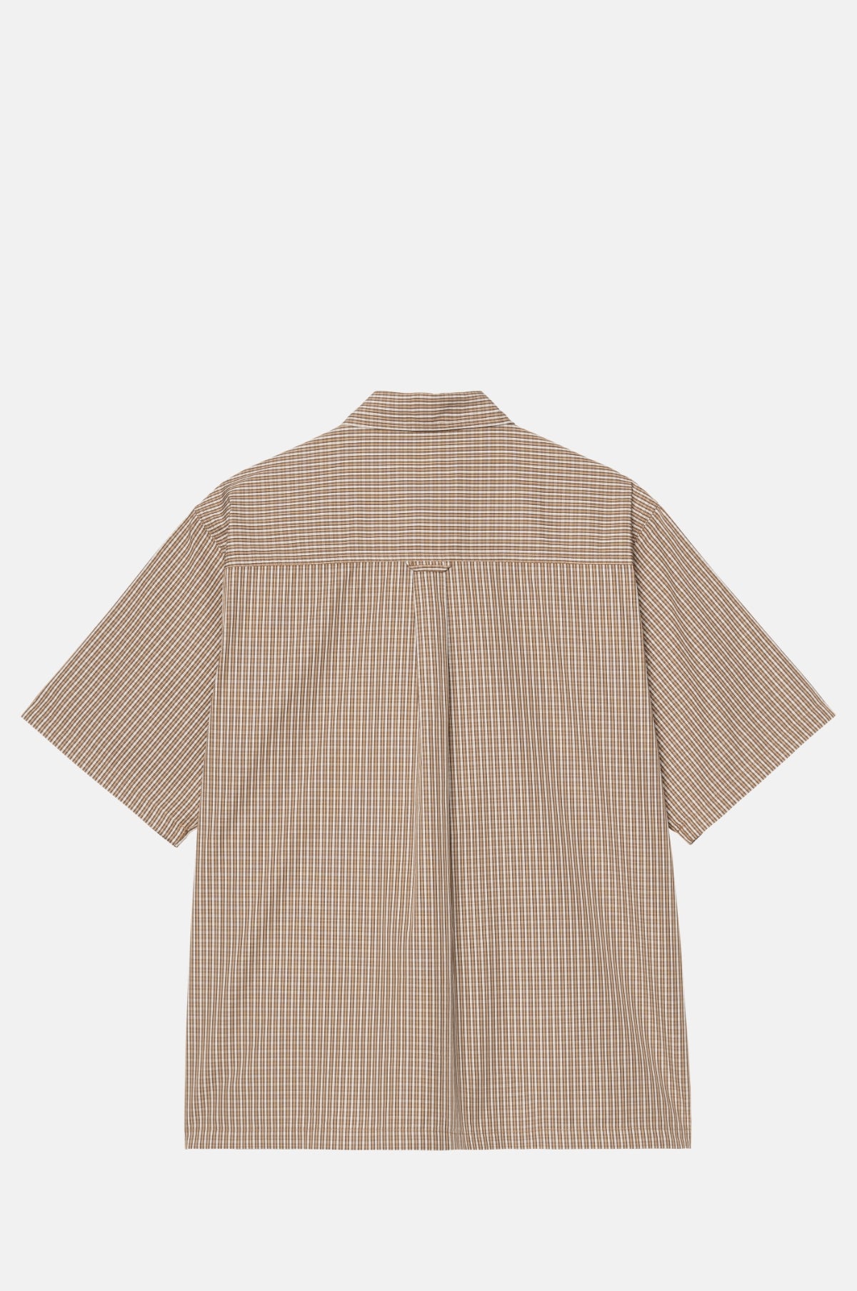 The S/S Groff Shirt in Hamilton Brown is a lightweight and short-sleeve style, coming in a loose fit and is made from lightweight cotton poplin with a brown and beige check. It has a button down collar and logo embroidery on the left chest.
