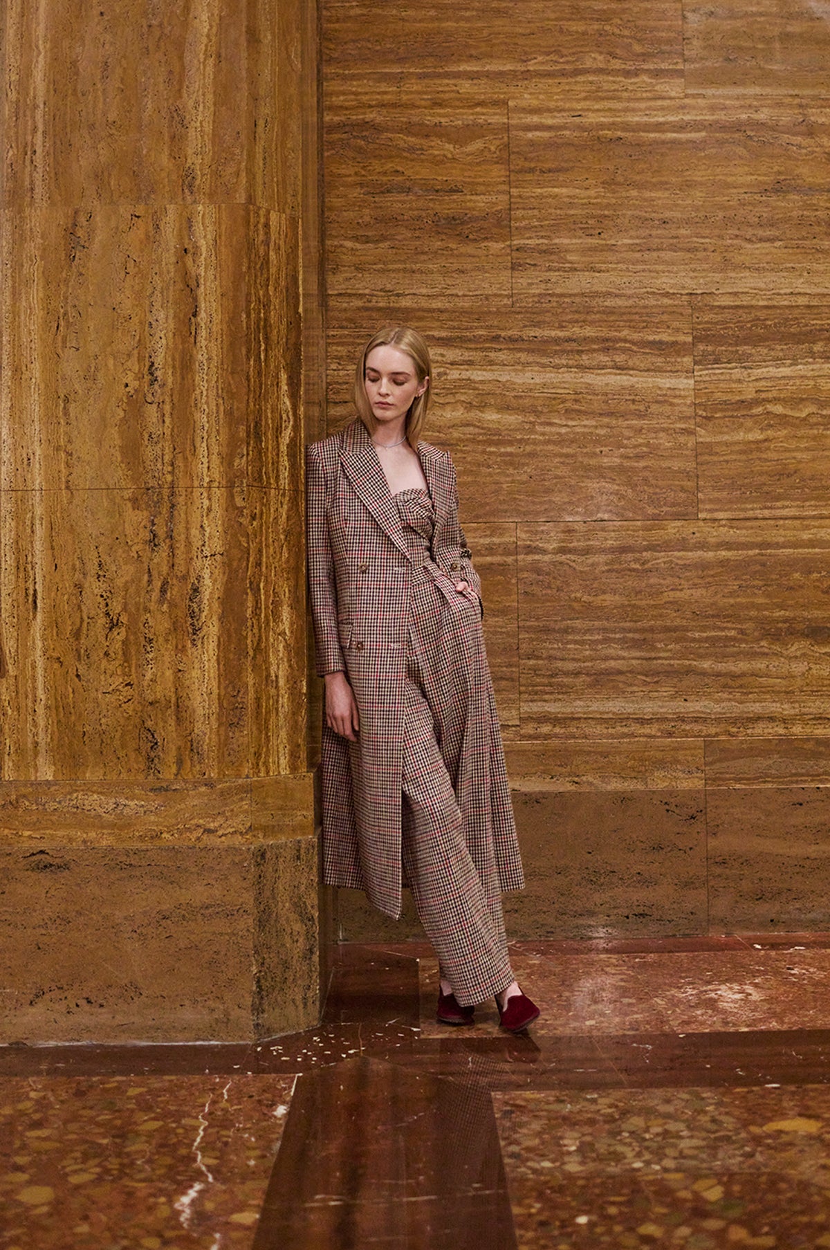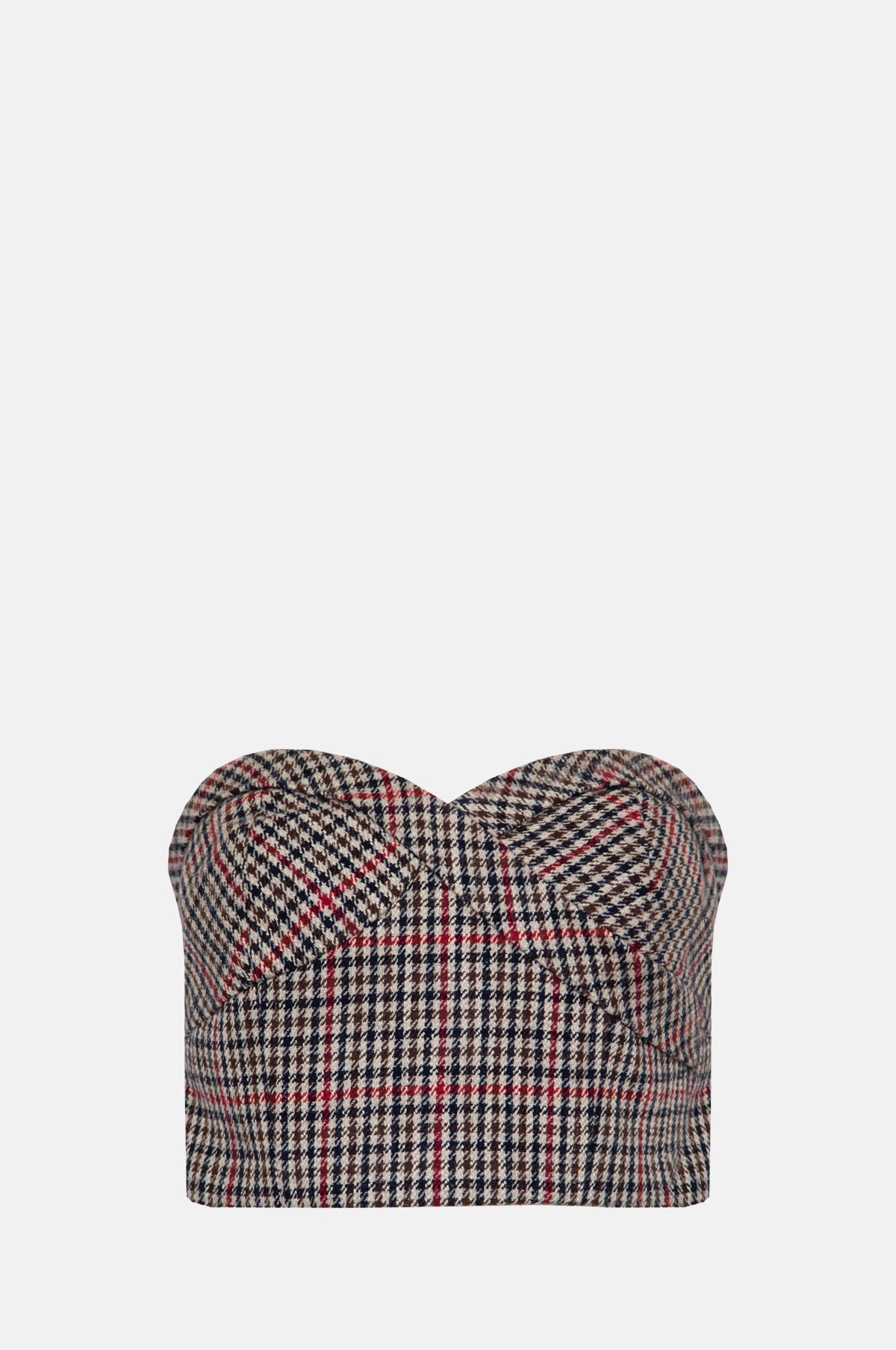 The Scottie Top is a show stopping houndstooth bustier from Hunter Bell. Boasting a sweetheart neckline and a tailored fit, this striking piece is a standout choice for any wardrobe. Structural details like underwire boning ensure this top sits seamlessly on. Pair with the York Trouser for an elegant and fashion forward take on the classic pant suit.