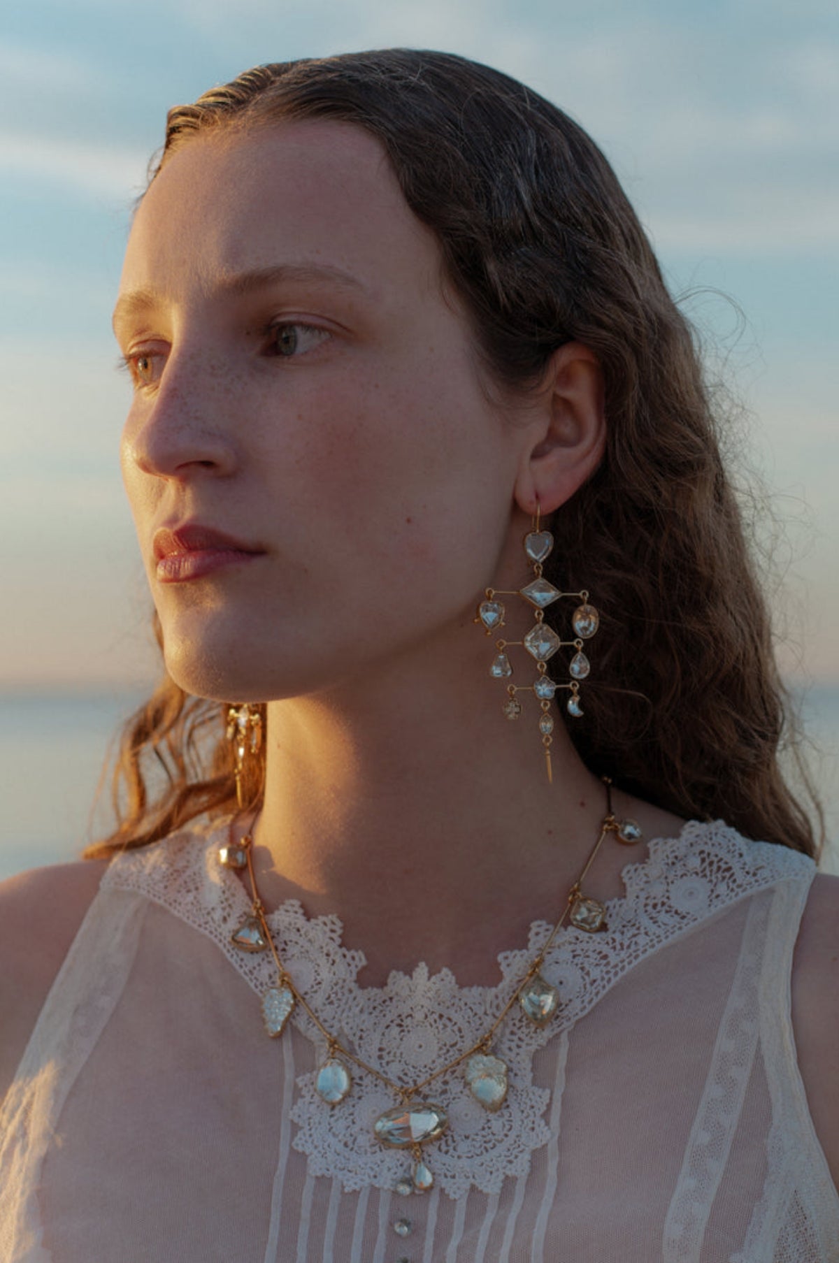 Diamonds may be a girl's best friend but the enchanting glamour of a strand of crystals laced around one's neck certainly gives them a run for their money. The sort of showstopper we can picture Jackie Kennedy wearing with a Chez Ninon gown at Buckingham Palace, you'll look positively regal in this necklace from Grainne Morton. Made from ethically sourced 18k gold-plated silver and vintage crystals and rhinestones it has an old world elegance that seems to have been lost to time. Truly stunning, this is a piece that speaks for itself and will become a beloved part of your jewellery collection.