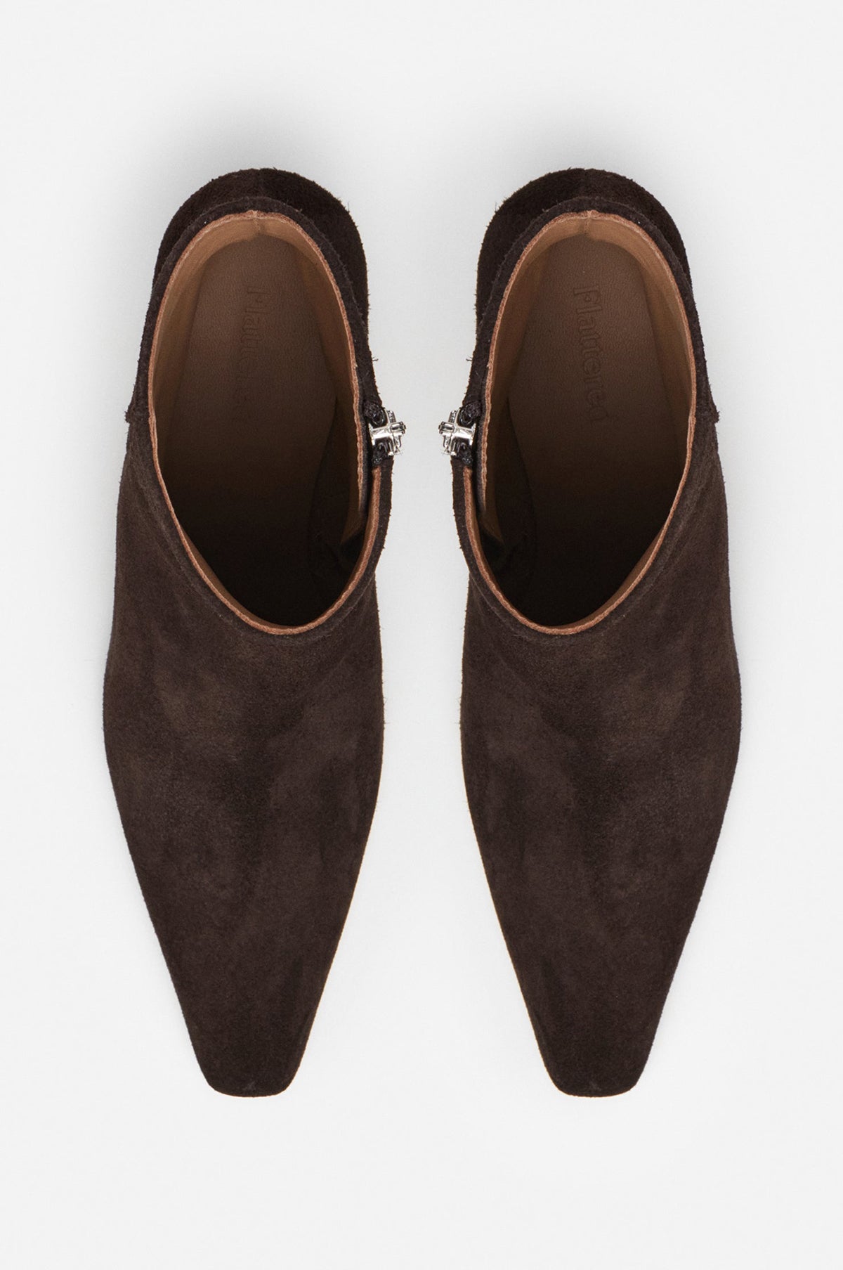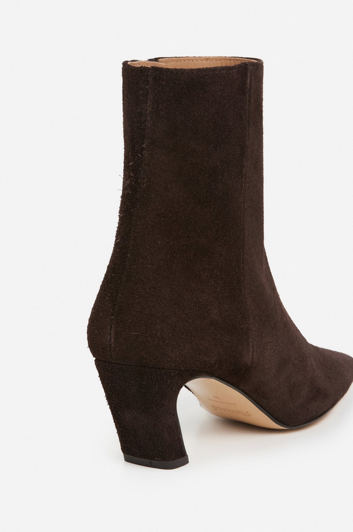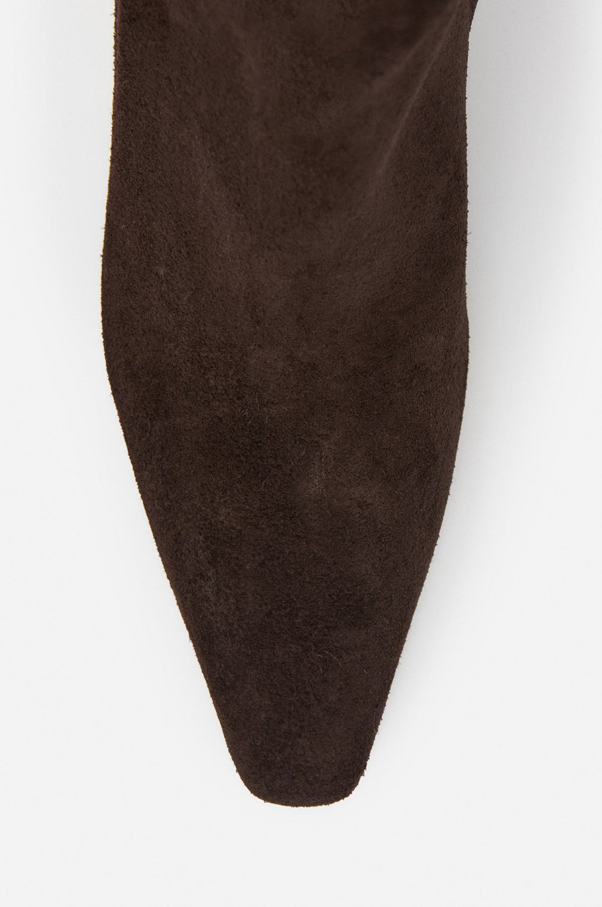 Slip into casual sophistcation with the Xena chocolate suede boot. Handmade by artisans in Europe and designed with Scandinavian simplicty in Stockholm. With a tapered long squared toe and horn style heel, the Xena pairs well with tailoring or denim.